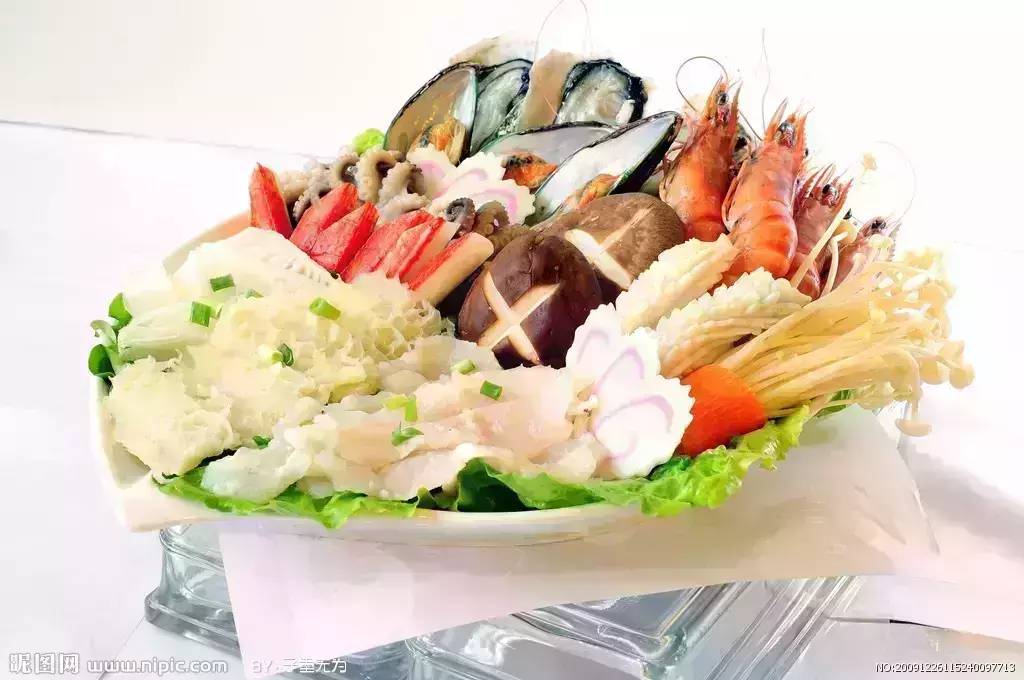 蔬菜应该是种类、数量都最多的食物,最好能兼顾各种蔬菜,一定要有对身体益处大的绿叶菜:菠菜、茼蒿、香菜、莴笋叶、豌豆苗、西兰花、绿叶生菜、油菜等。再根据喜好选择一些浅色蔬菜,如大白菜、冬瓜、白萝卜、笋片等。蘑菇也可多点一些,很多火锅店都有菌类拼盘,不妨点一份,可以一次吃好几种蘑菇。