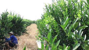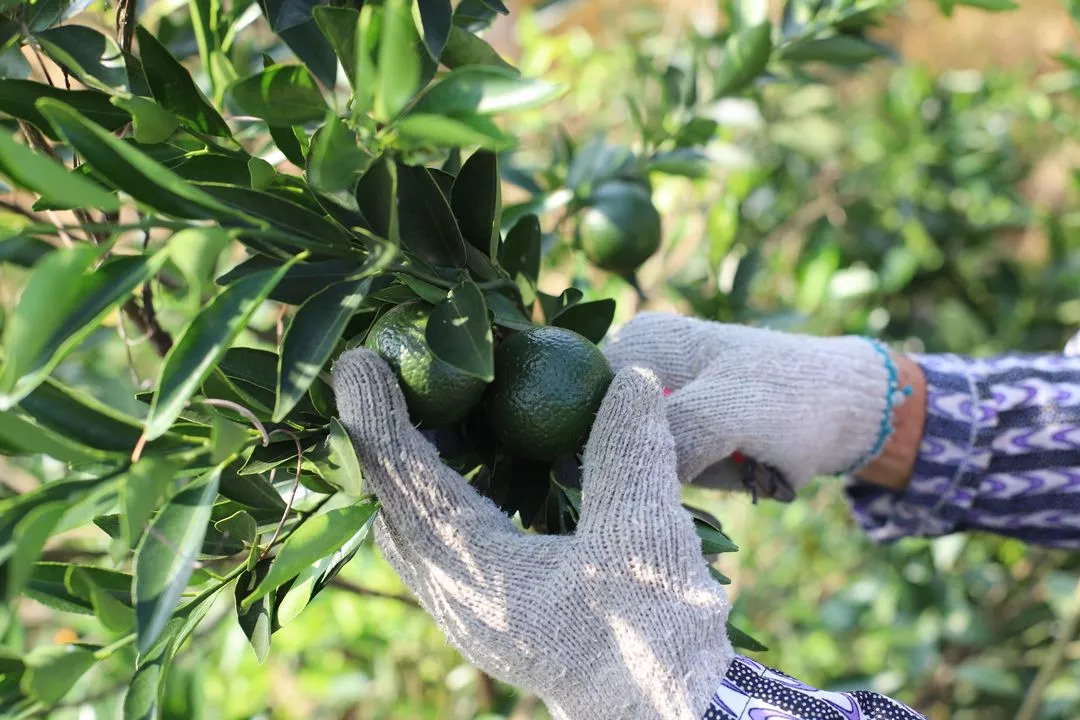园子的青柑散发着诱人的清新柑香,我们到达时,庄园的工人们正忙着采收。