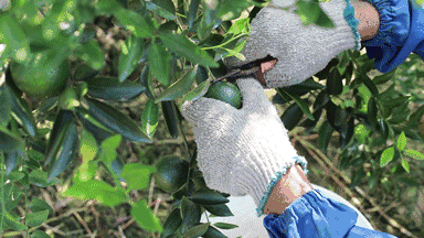 每年的这个时候,未成熟的天然新会柑就会被手工逐个采摘下来,这时的青柑质地坚硬、果皮薄、清甜有回甘。
