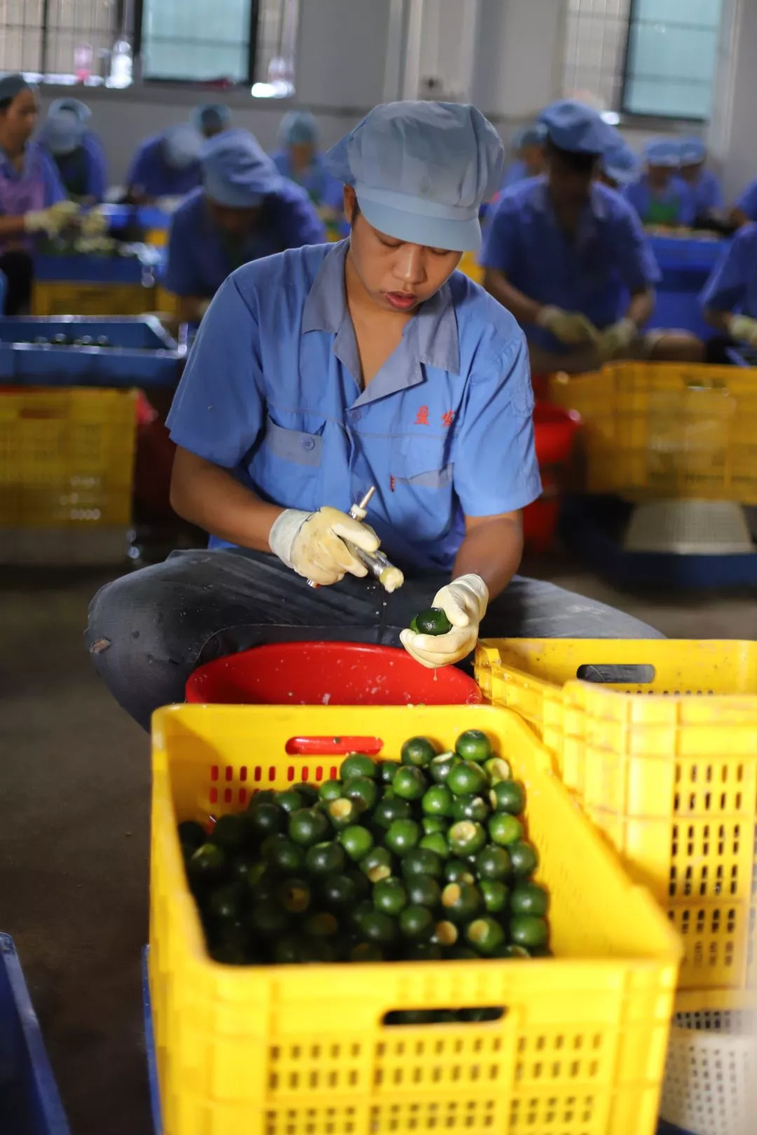 闻着青柑独有的舒心果香,一个个青涩的小青柑和我们一起来到了加工车间。