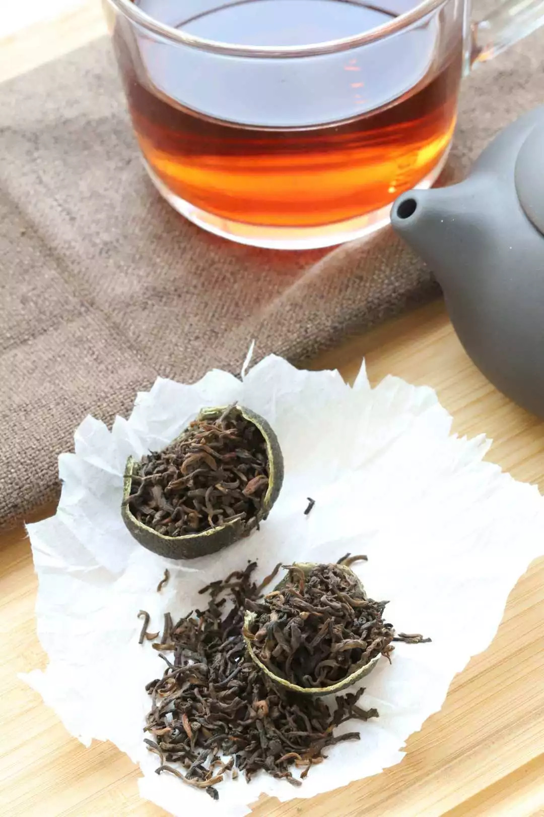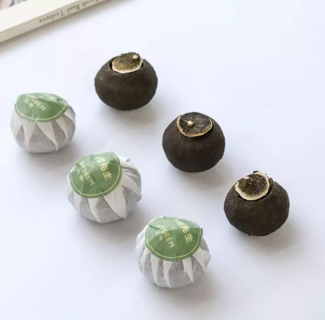 而小青柑则是以果皮未着色、未成熟时的纯天然青柑和云南普洱熟茶为原料,制成独具风味、有良好效用的小青柑普洱茶。
