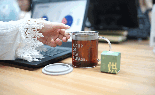 泡茶杯杯盖的材质用的是食品级硅胶,安全无毒,不容易染色,所以茶包包括青柑泡到一半拿出来放在杯盖上,清洗起来很容易,也不会留下味道。