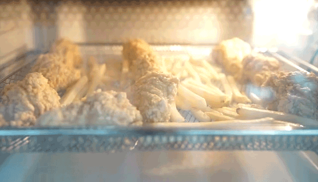 烤箱预热结束后,将炸物放入烤箱,按开始键。