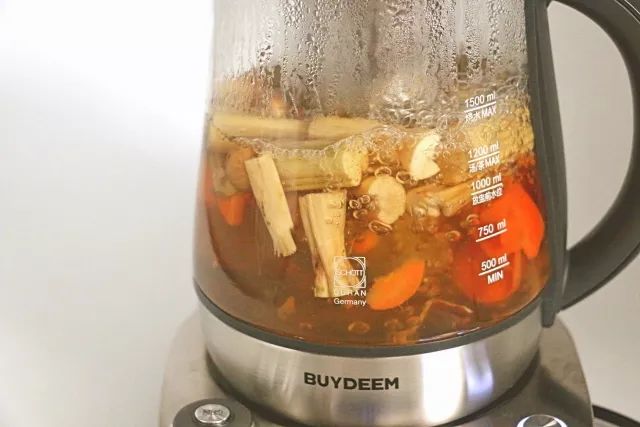 3 | 煮第二壶时留前一壶汤汁约500ML,加水至1.2L,重复养生汤/滋补汤模式,断电后即可饮用;