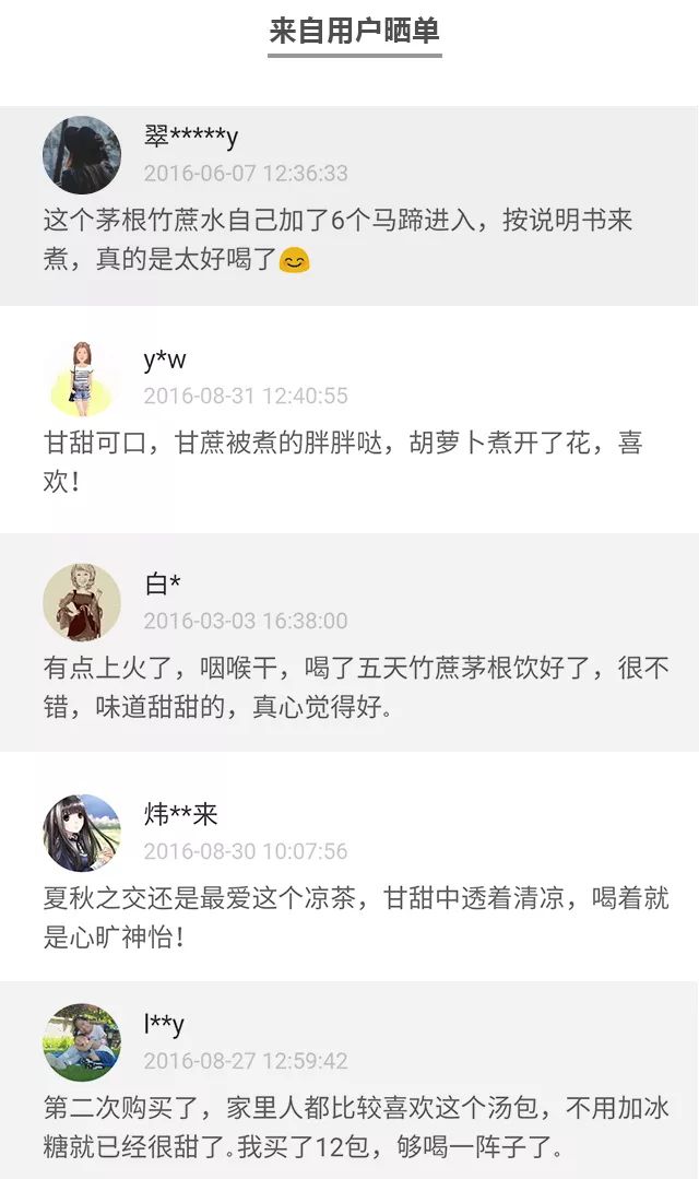 经过营养师团队上百次的科学配比,以及国家认证品质的食材——这款竹蔗茅根饮,一直备受大家喜爱。看这100%的好评度,你要不要也试试看呢?