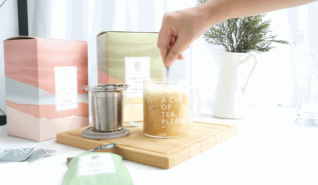 隔着泡茶杯的透明玻璃杯身,就可以观赏清雅的颜色,闻香品奶茶啦。