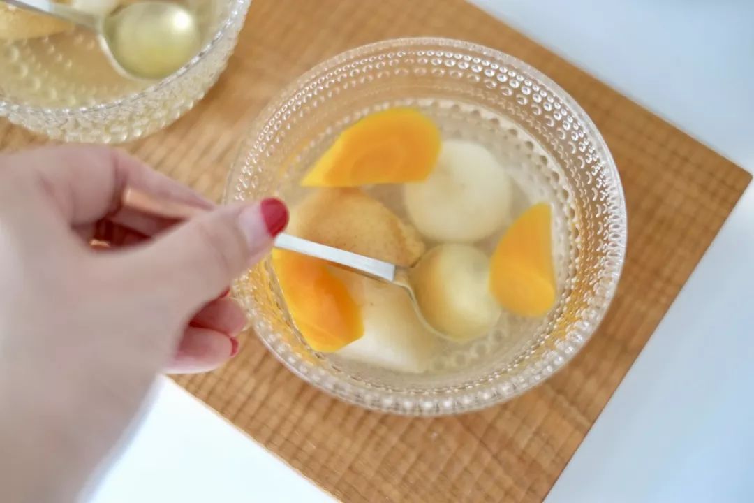雪梨:味甘微酸、性凉,有生津润燥,清热化痰,解酒的作用。