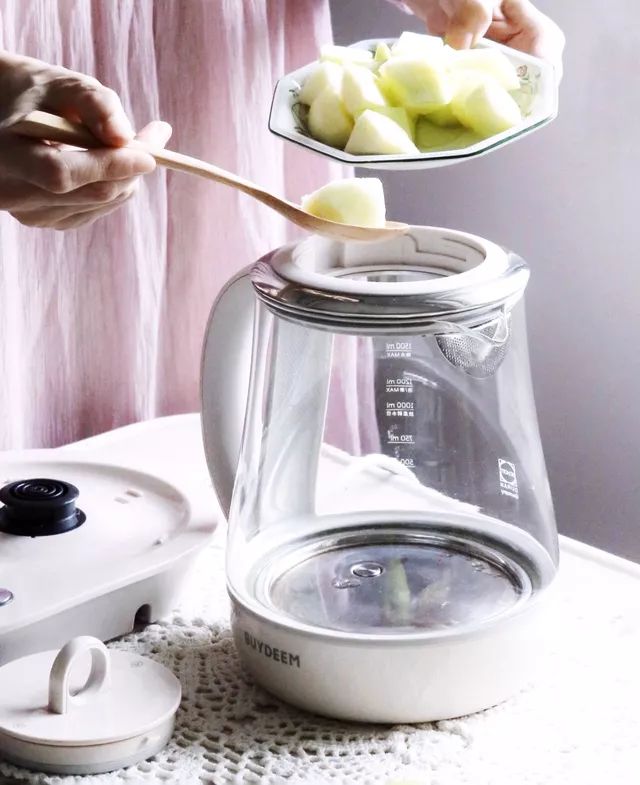 2.将食材放入养生壶,加水1200ml,启动水果茶模式。