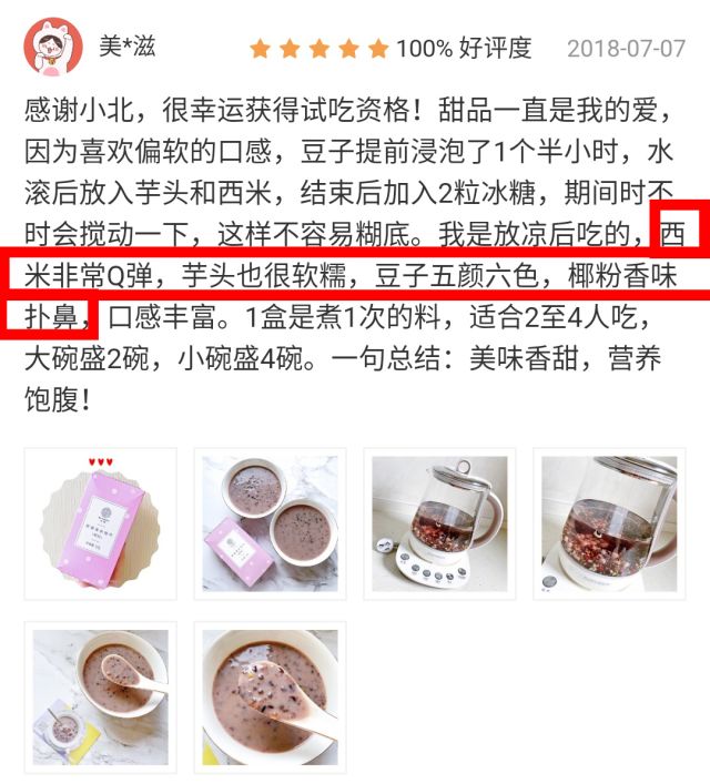 配合来自南方的大颗粒的广东西米、正宗海南椰汁,加上来自肥力高的黑土地粗粮:眉豆、红豆、绿豆、紫糯米、小麦仁,可补血、提高免疫力;对肾、心脏和肠胃都有益。