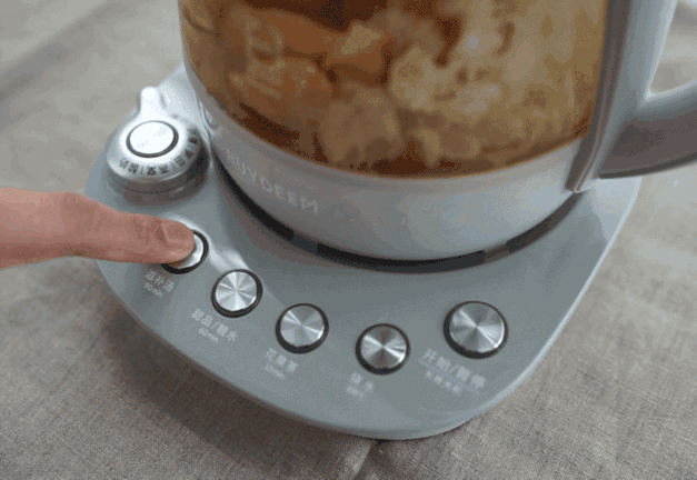 STEP 7:将所有配料倒进去,再按一次【滋补汤模式】,K106用户直接按【银耳滋补汤】,其他型号选择【养生汤模式】。