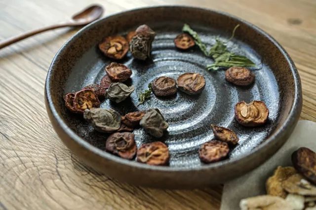 手工生晒的乌梅干,河北炒山楂,配以适当比例的九制陈皮和甘肃甘草,这些食材煮出一锅浓稠诱人汤水。