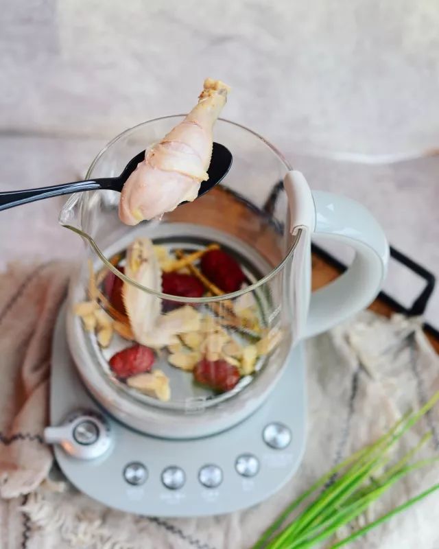 5.在养生壶中倒入约清水,将炖盅放入养生壶,保持水位线在炖盅前水位。
