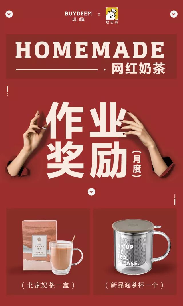 还有一个彩蛋!小北会在月底收集这个月所有的奶茶作业进行评选,得到票数最多的那个,奖励一盒奶茶+新款泡茶杯一个!