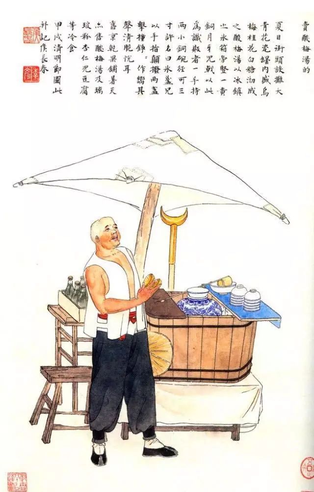 清朝《燕京岁时记》中的酸梅汤用酸梅配合冰糖调以玫瑰,木樨,被用作宫中贡品;