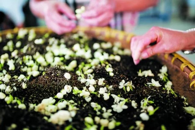 台湾高山茉莉绿茶采用独特的鲜花窨制工艺,利用茶叶较强的吸附作用锁住茉莉花的天然香气,令茶味淡雅、花香扑鼻。