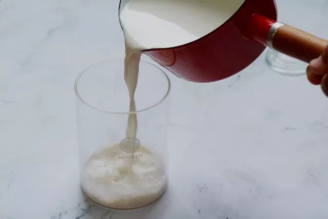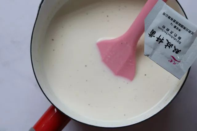 5. 煮好的牛奶放至40度时,加入1克的酸奶菌粉,搅拌均匀。