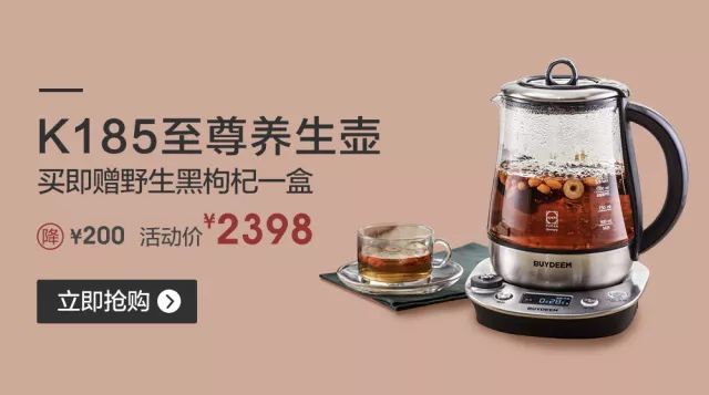 焕新包装的旗舰养生壶K185今天闪购特惠!爆款直降200元,现价仅需!配套赠送食间臻礼料包礼盒。