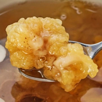由于生长于树木上,黄金耳有一种天然的淡木香味,用它煮出来的汤水,胶质丰富,口感滑嫩粘糯。
