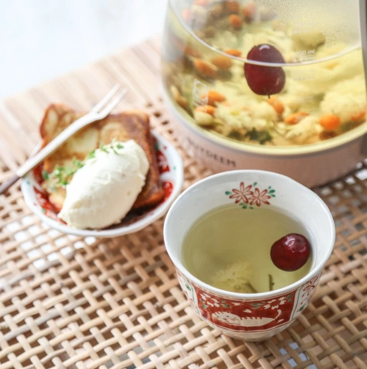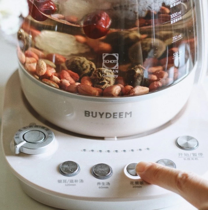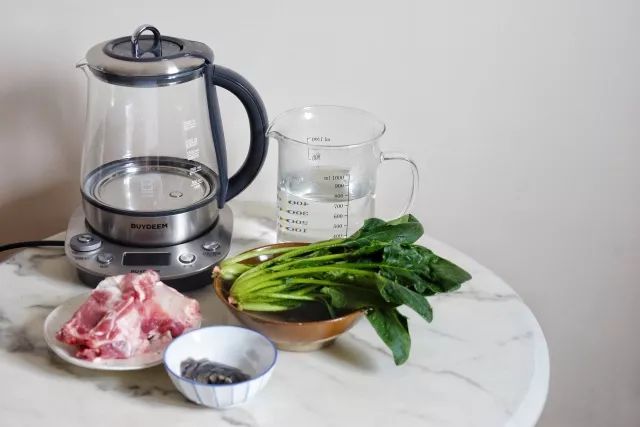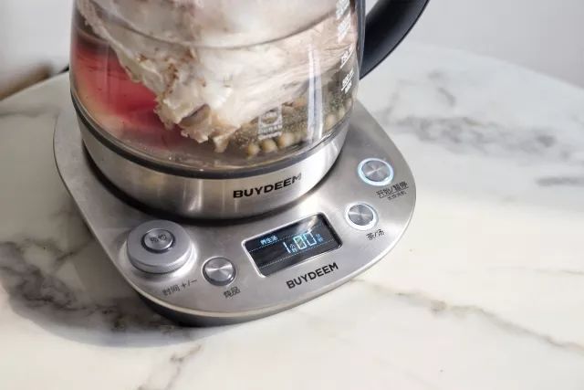 2.猪骨和洗净的刺参放入养生壶中,加水至1200mL,选择养生汤模式。