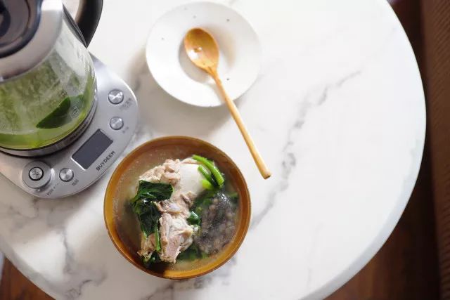 3.最后放入菠菜煮10分钟左右,待自动断电后加点盐调味即可。