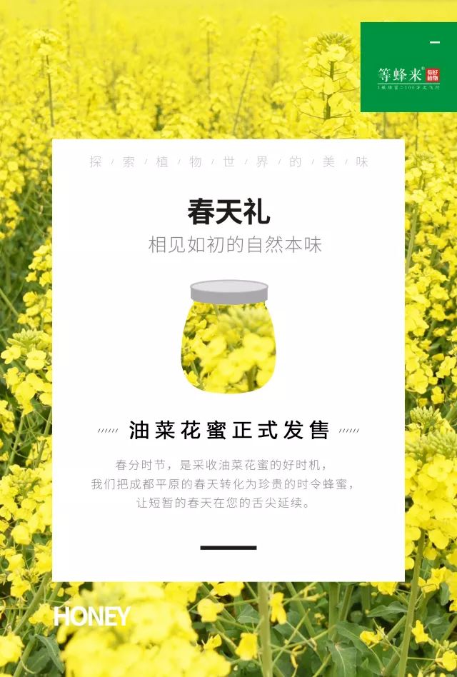 我们把油菜花蜜作为每年的第一款蜂蜜推出,这成了我们和春天一年一次的约会,这是我们践行承诺的仪式。