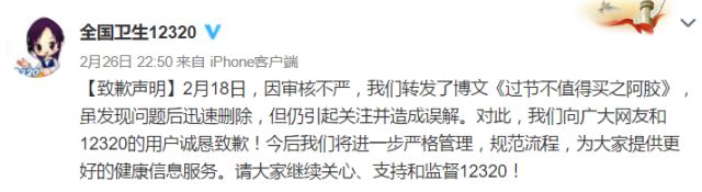 在中国中药协会发声力挺阿胶疗效后,@全国卫生12320致歉了...