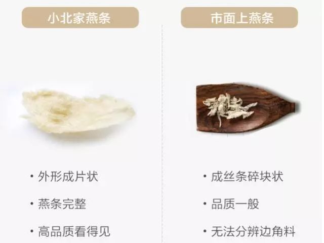 不同于市面上售卖的丝条或碎片状燕条,小北家的燕条条形大而完整,不用边角料,高品质看得见。