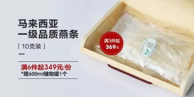 燕条每盒净重10g,3月15日至3月18日,买3盒每盒享优惠价;买6盒,每盒优惠价,相当于直降了将近300元,还加赠600ml储物罐1个!