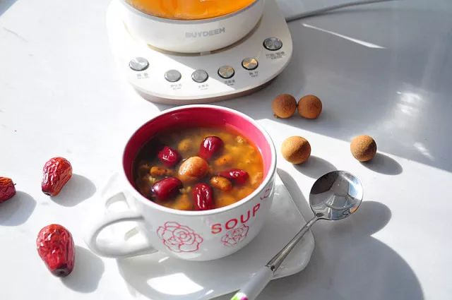 1.将所有的食材用清水冲洗干净,放入养生壶中,加水至1200ml水位线,开始养生汤模式。