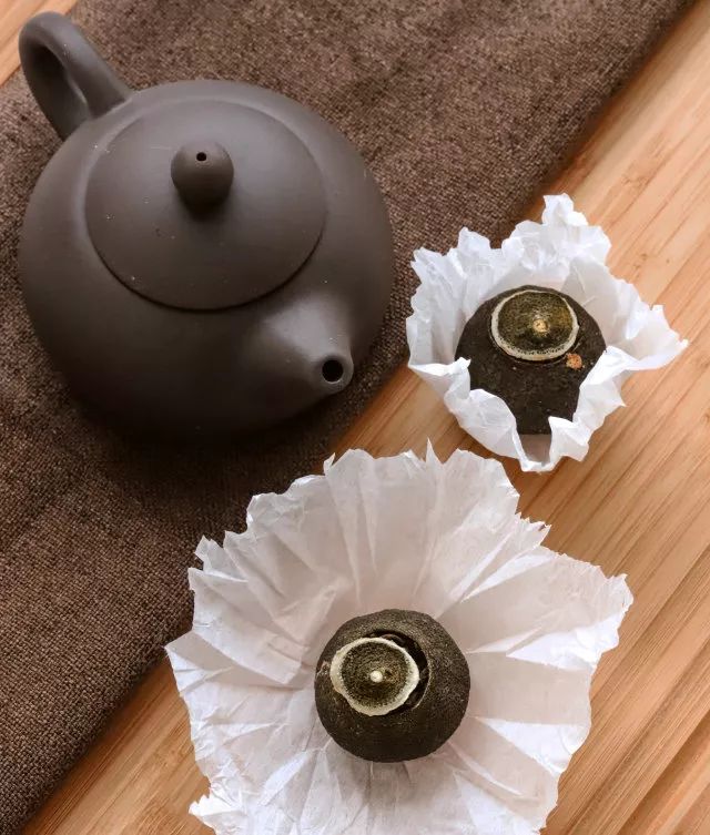 融合了清醇的果香味和普洱茶醇厚甘香之味,小青柑让柑皮与茶叶相互交融形成了风味独特的柑普茶。