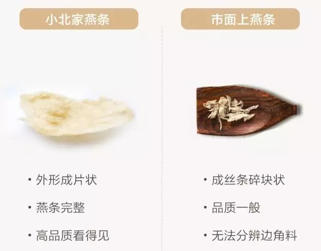 不同于市面上的边角料,小北家的燕条完整,外形呈片状,肉眼就能看的出是不是高品质。