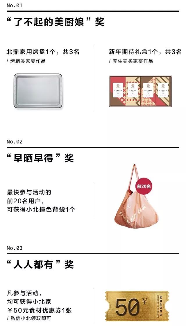偷偷告诉你:凡是参加了此次活动晒图的美厨娘,都能领取到一张小北家年货节优惠券哦!正值年货节,领到就可以用!