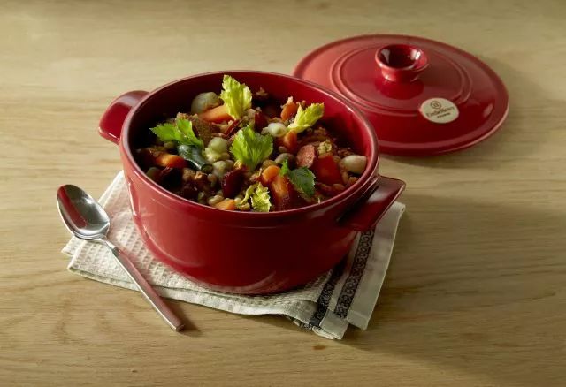 跟上面的塔吉锅一样,陶瓷炖锅也有传热快、受热均匀、省水省能的特点,同样非常适合中式焖煮。