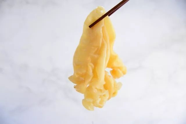 好的花胶需要满足“胶透、纹清、肉厚、肉糯”的特质,也要观察泡发率及出胶率。小北家这款花胶筒质地结实、形态完整;在阳光下呈现半透明的淡黄光泽,洁净无杂质,血筋淤血少,自然纹理清晰可见。