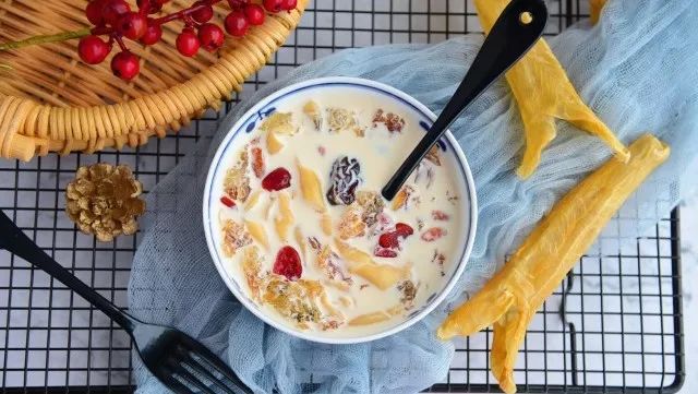 秋冬季节肠胃比较脆弱,经常喝粥健脾胃。在煮粥的时候加上少许花胶,提鲜又滋补,有助于胃肠道消化提高食欲。