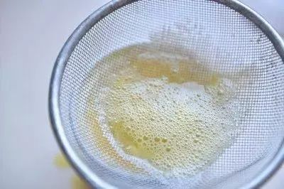 3.用网筛过滤混合好的蛋液,将搅拌产生的气泡过滤掉,如果没有网筛可以让蛋液静置一段时间等气泡消除。