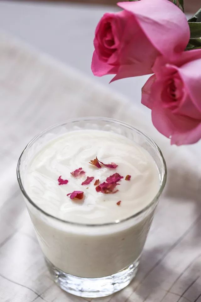 享受过充足日光浴的玫瑰,提取出精华液,喷雾干燥后制成粉末加入酸奶中。