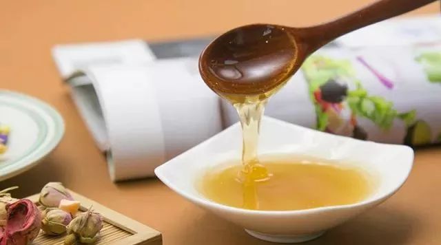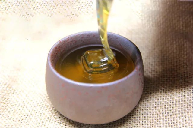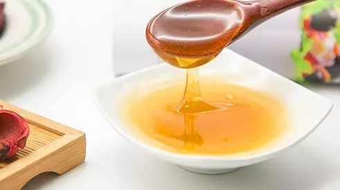 枇杷蜜呈浅琥珀色,质地浓稠,轻拉成丝 。