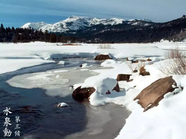 阳气初生,山中泉水已感受到阳气之温热,虽然还是冰雪苦寒,但冰面之下已有泉水在流动。