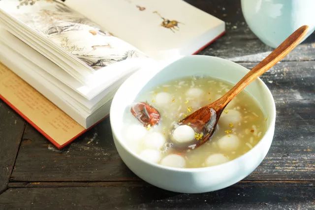 糯米粉1小碗、水、米酒、干桂花1茶匙、红枣4个、枸杞