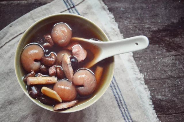 黑豆30g、黄芪3片、党参1根、桂圆5颗、猪瘦肉30g、生姜3片、盐适量