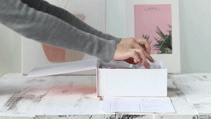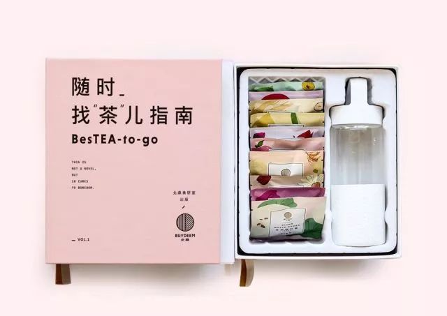 礼盒粉色淡雅包装,设计成一本书的样式,希望在你所有无聊时光,拿起这本“指南”,仔细研读揣摩,品味清幽茶香。