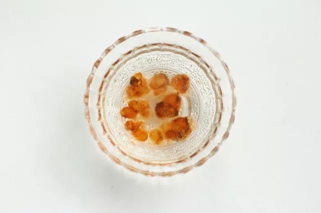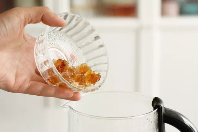 干的桃胶呈结晶石状很硬,看着有点像琥珀。用清水浸泡十多个小时候后泡发变软。它有清血降脂,缓解压力和抗皱嫩肤的功效。