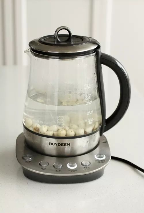 6.选择养生汤程序,养生壶会慢炖银耳,慢慢地会产生很多胶质,可以经常搅拌一下,可以析出更多胶质。(注意要开着盖子煮,不然银耳会溢壶)