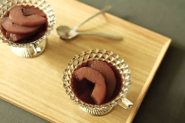 梨的爽脆、冰糖的甘甜、红酒的果香融合在一起,有种特别的清香。