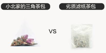 透明的玉米纤维三角茶包,一眼看的到所有食材,我们坚持不用边角料,原料完整喝得更安心。