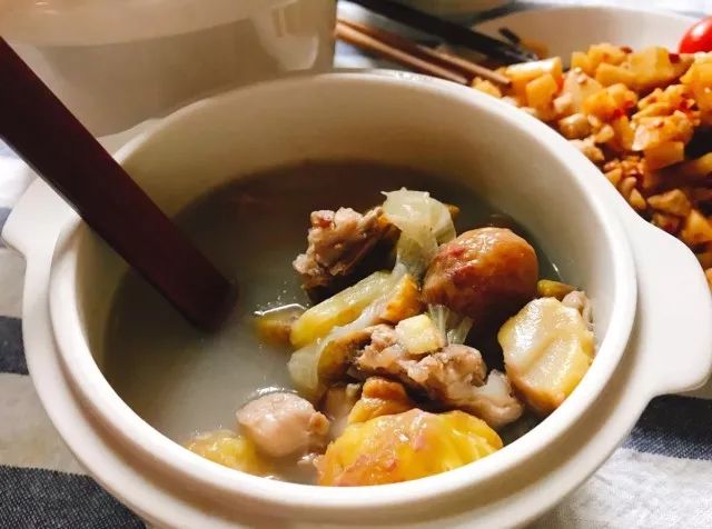 推荐肉:鸡肉。味甘,性微温。能温中补脾,益气养血,炖汤最好。