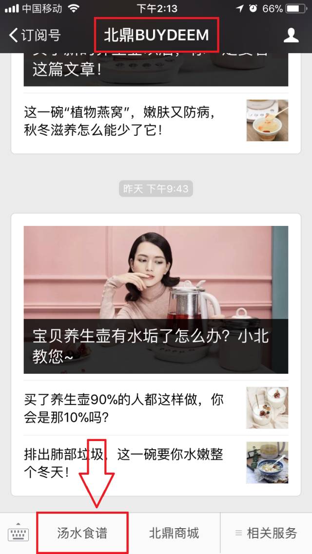 如果你有过这种疑问,请不要犹豫,直接点开我们的公众号『北鼎BUYDEEM』或者『小北家』,点击下方菜单「汤水食谱」。