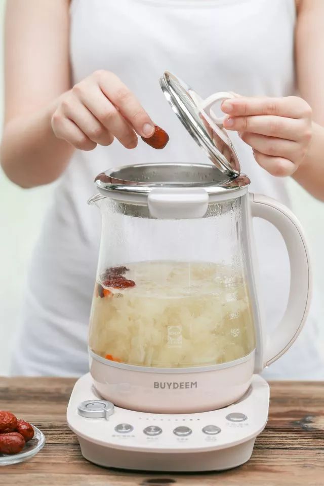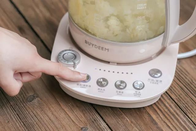 2.将银耳、皂角米放入壶中,加水至1200ml。启动银耳滋补汤功能;