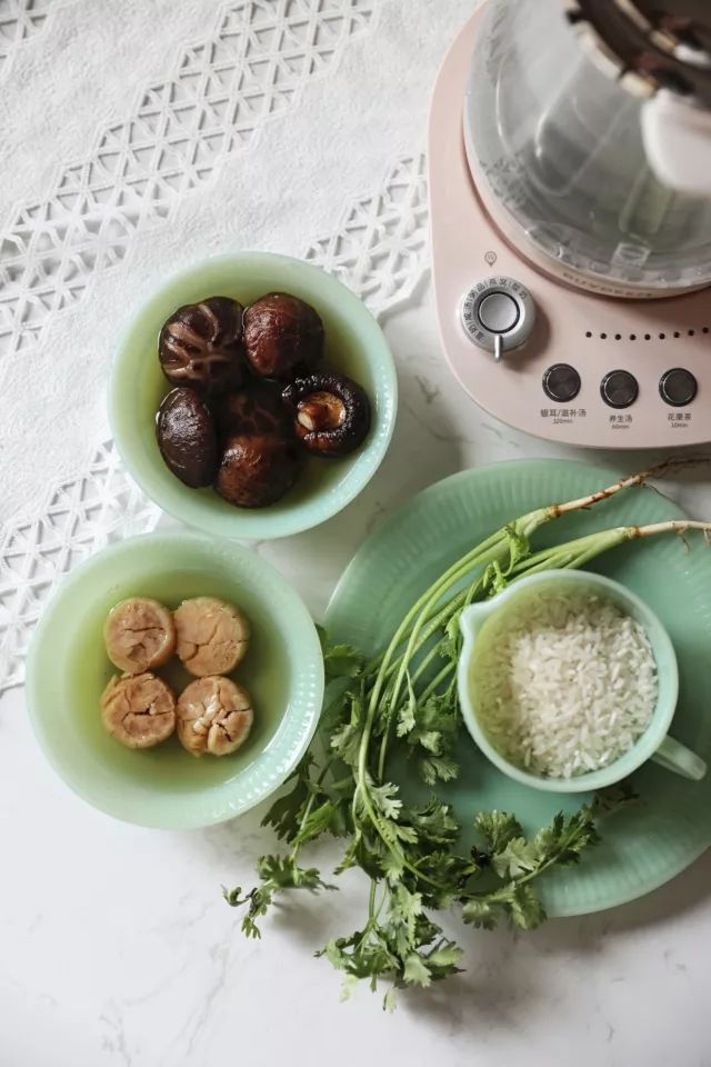 往粥里加一点冬菇和香菜碎,不仅可以让粥的颜色更漂亮,勾起孩子的食欲,更是增添了一丝清香。